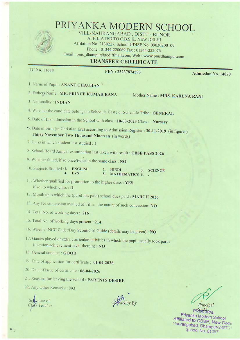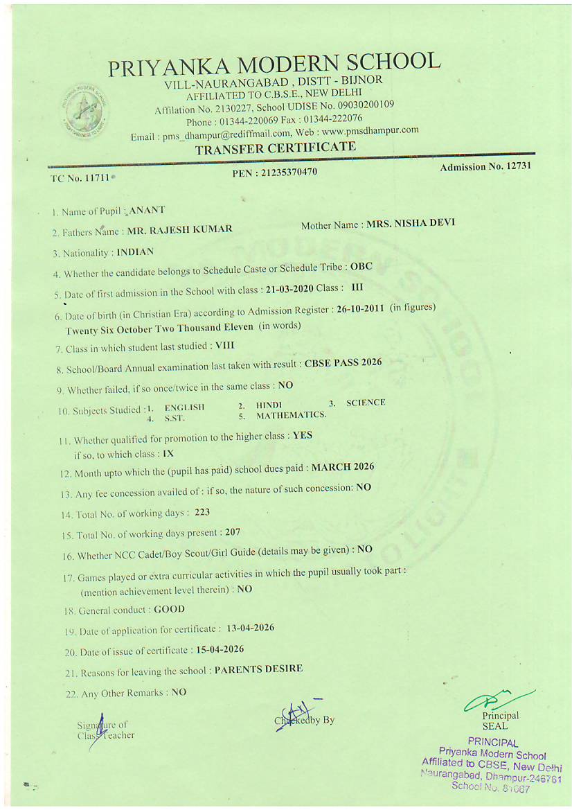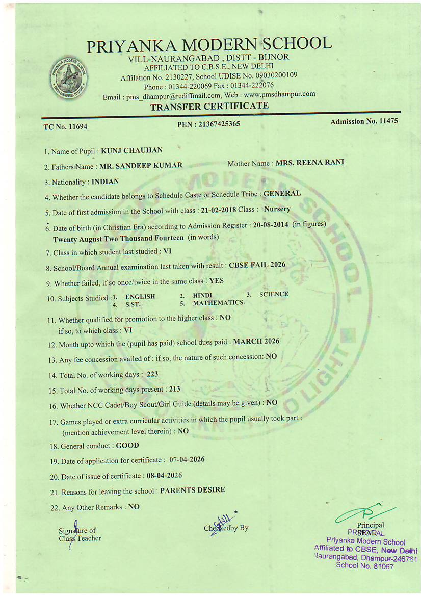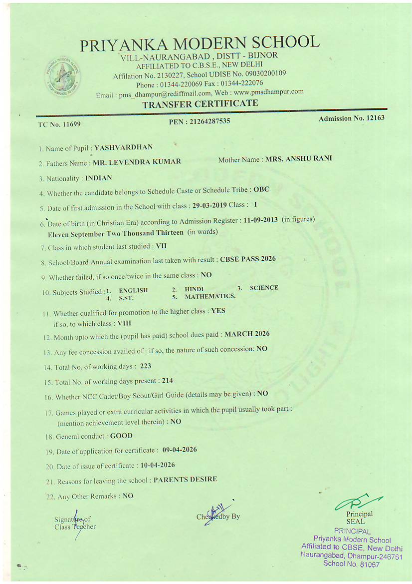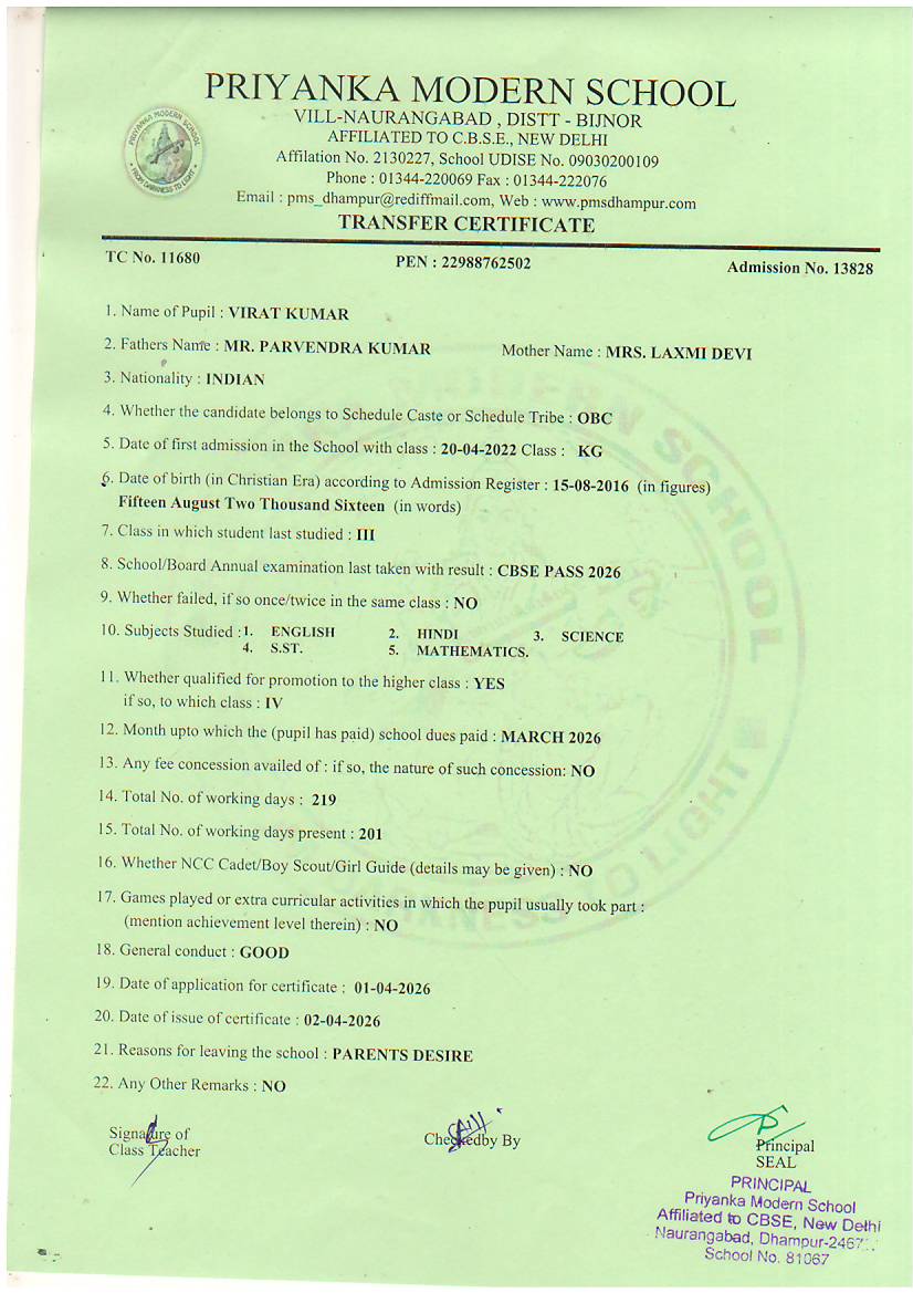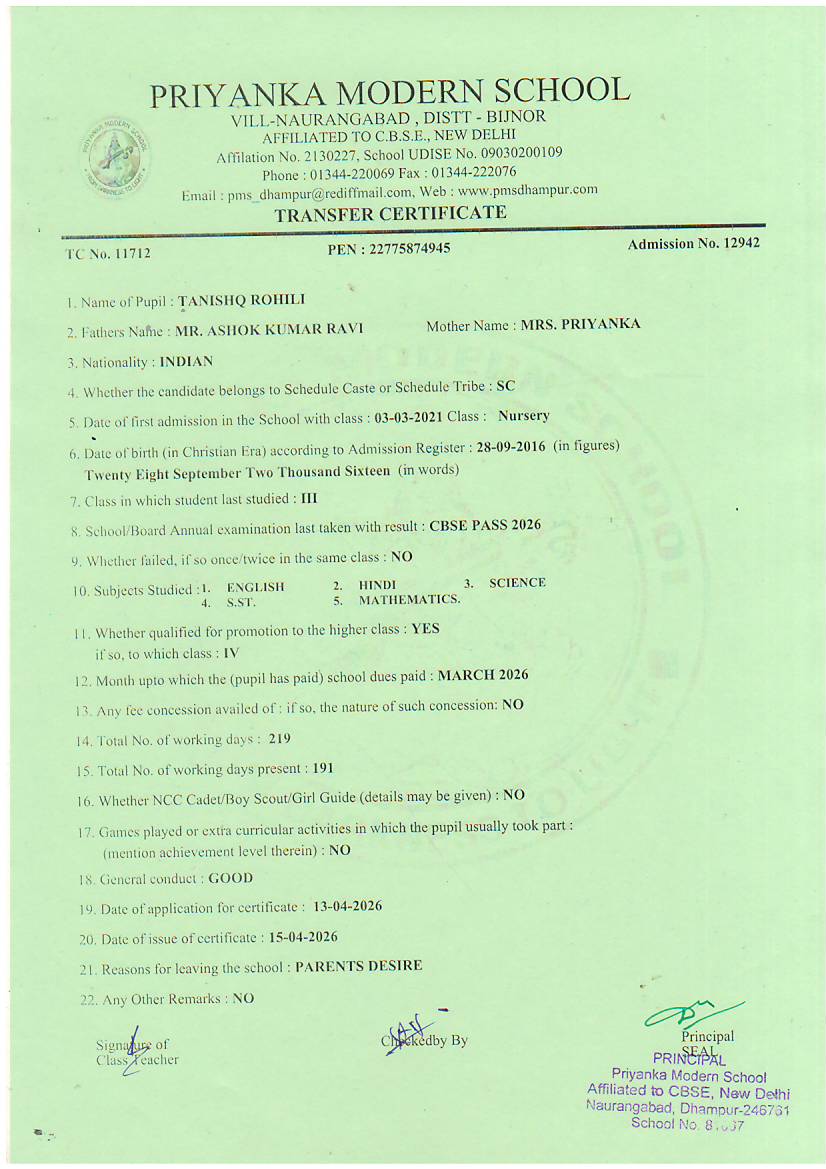 TCs issued by PMS Dhampur