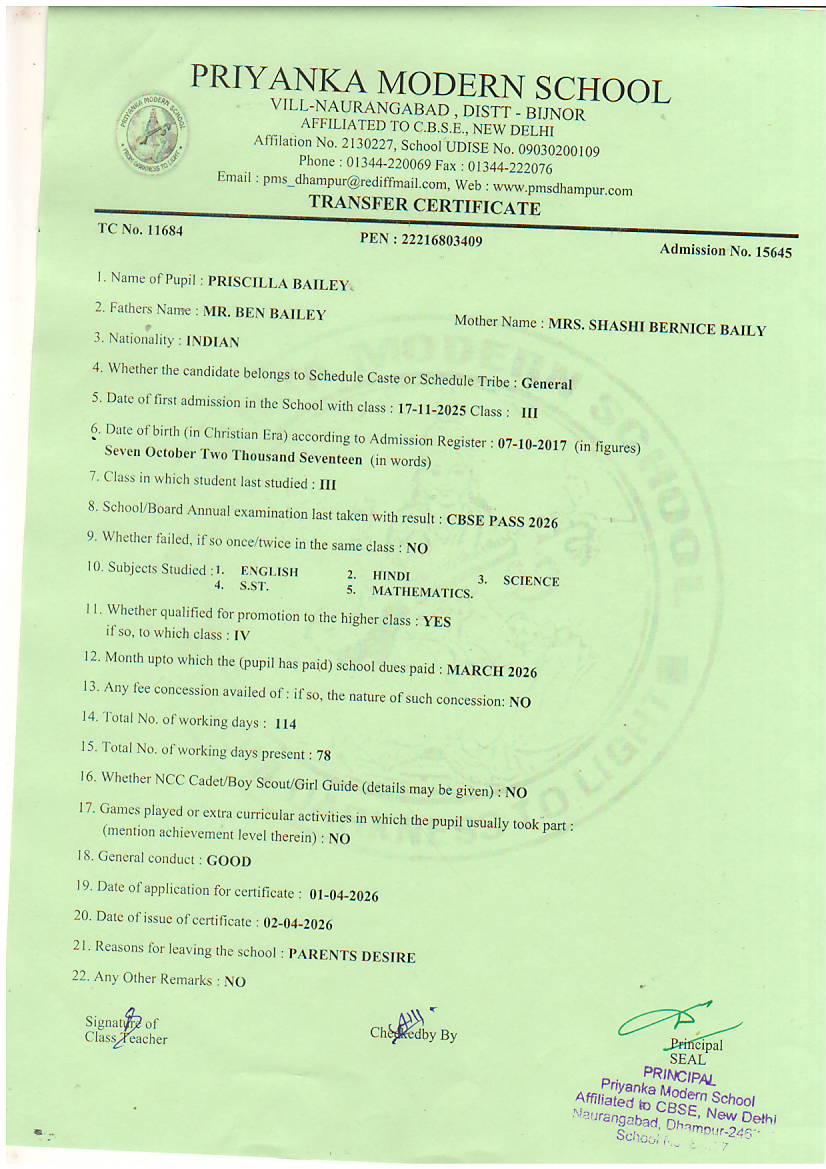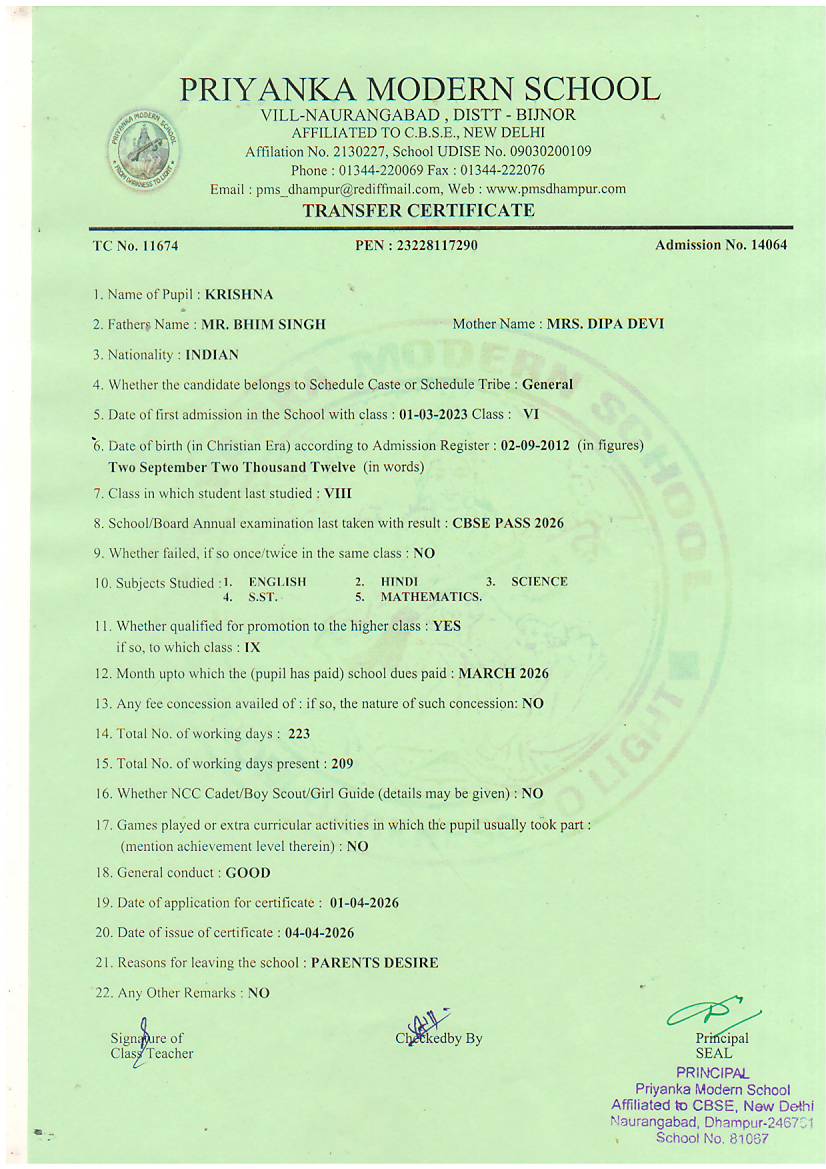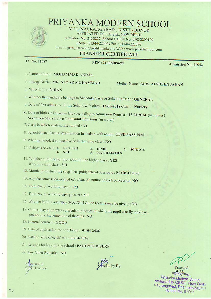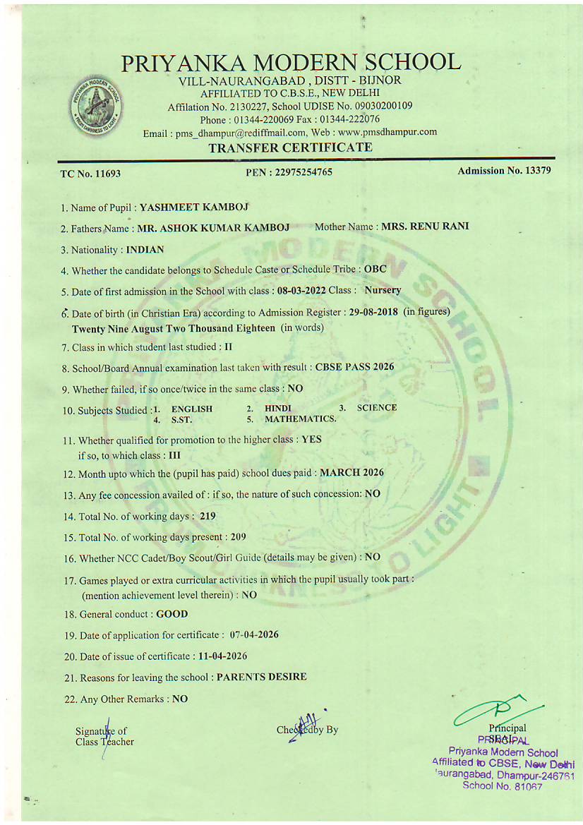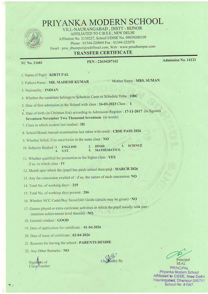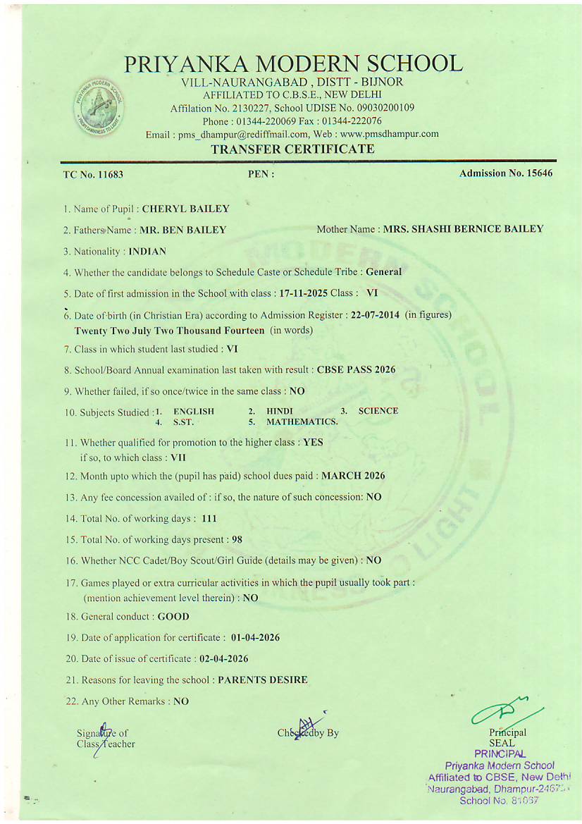 TCs issued by PMS Dhampur