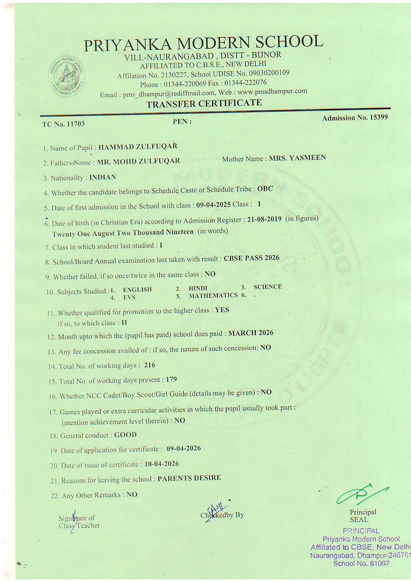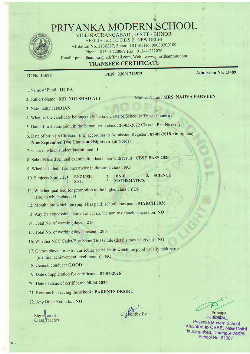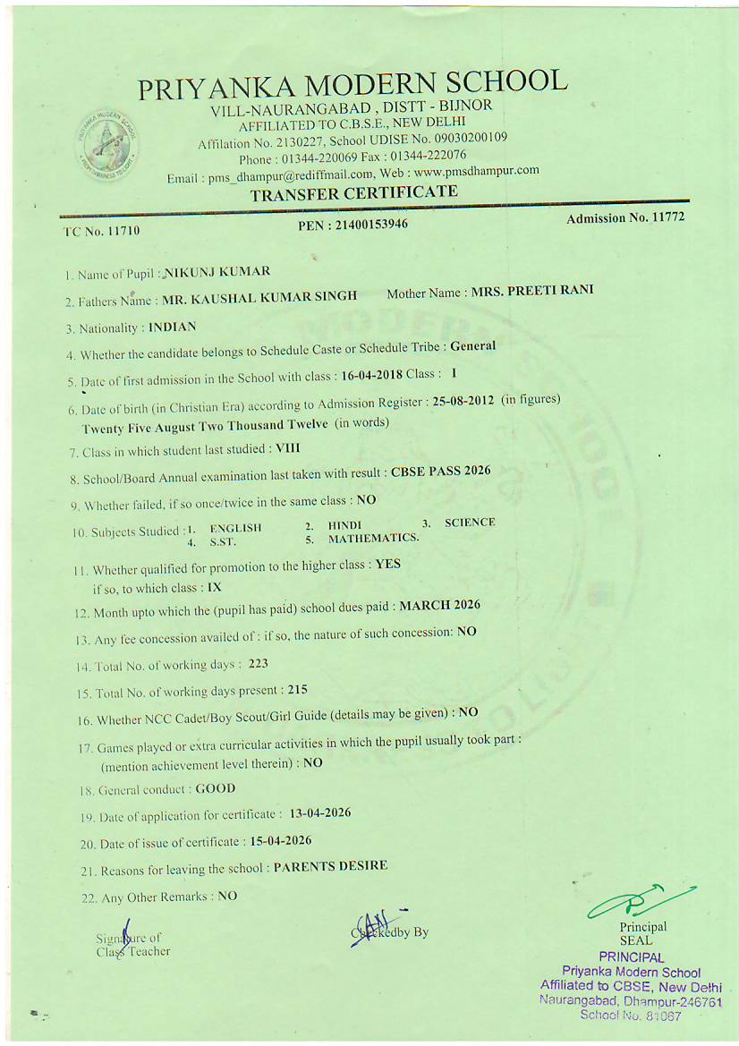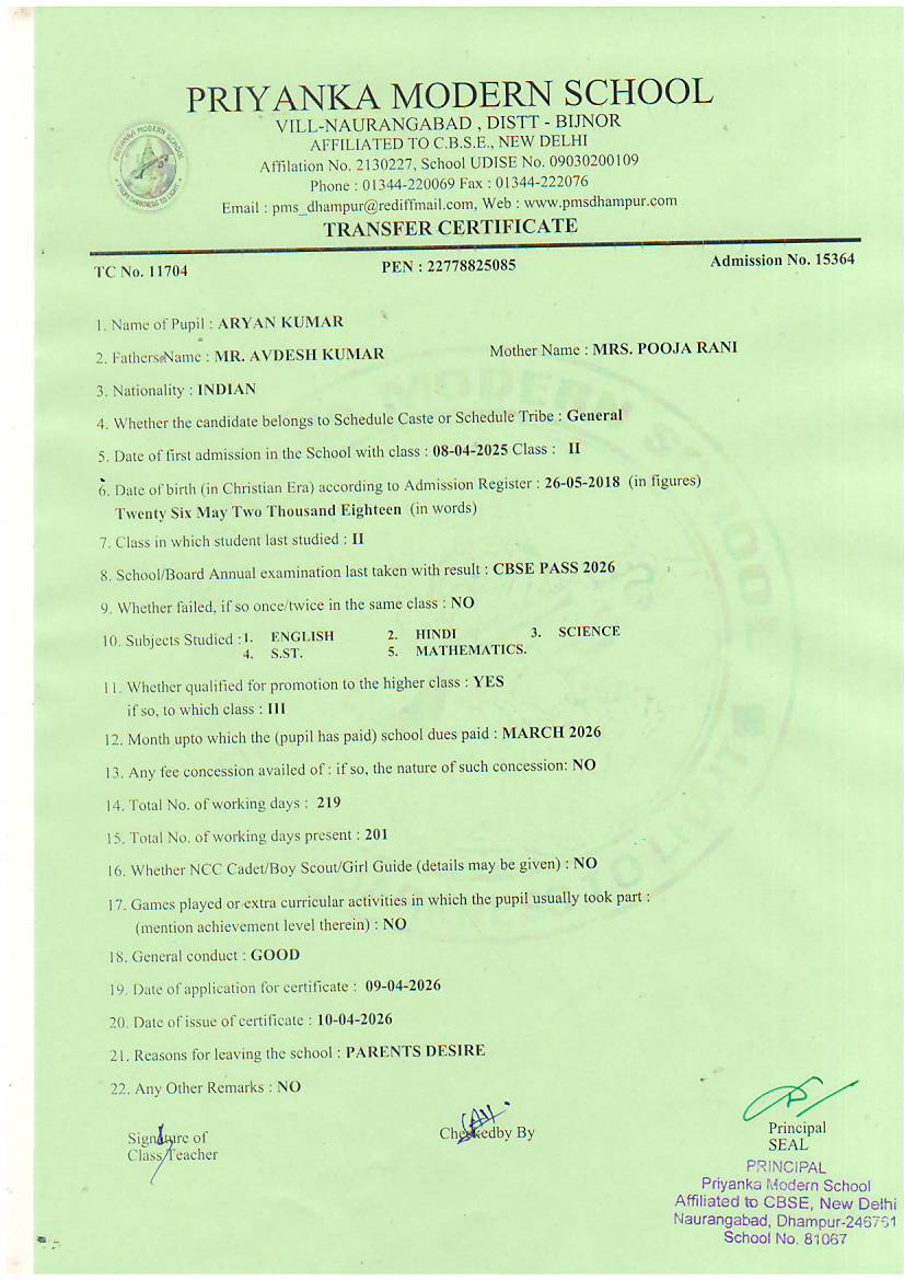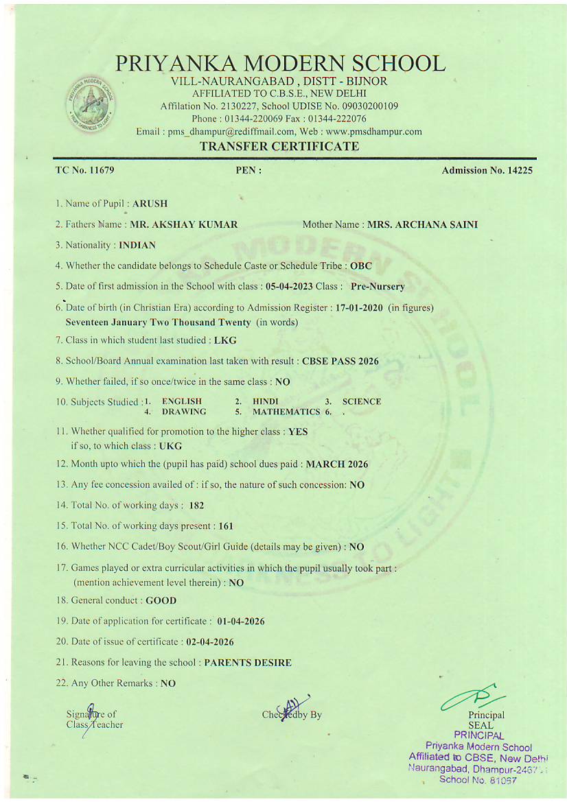 TCs issued by PMS Dhampur