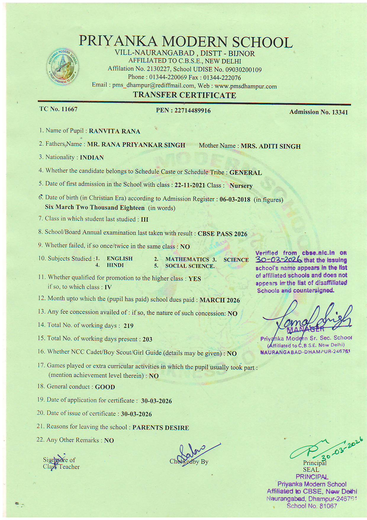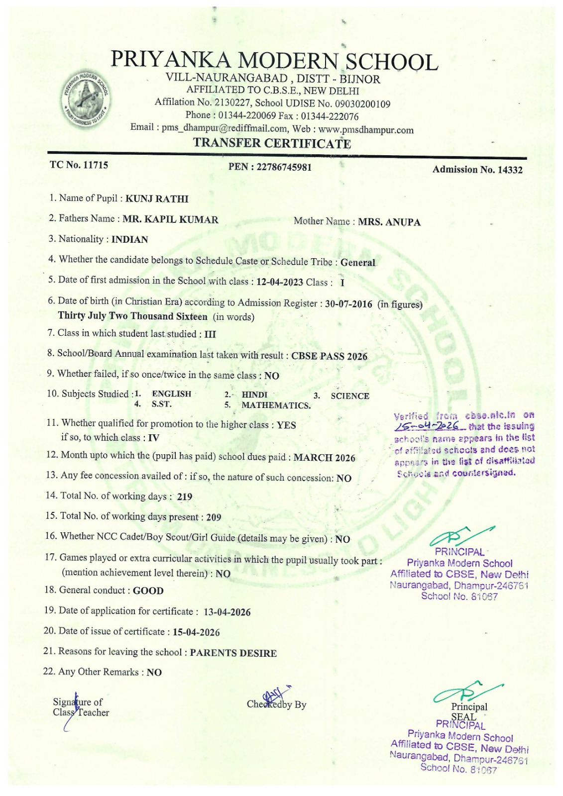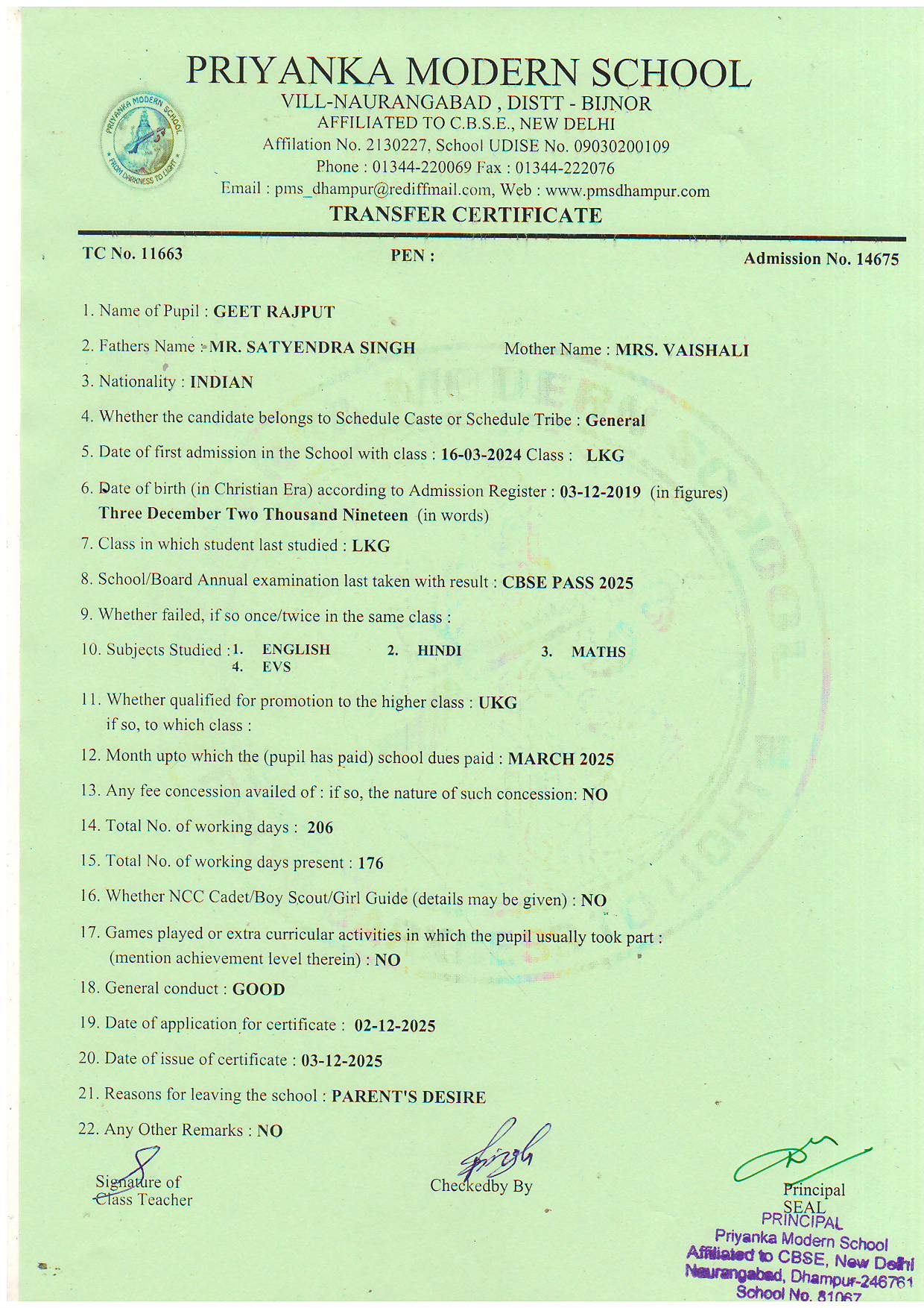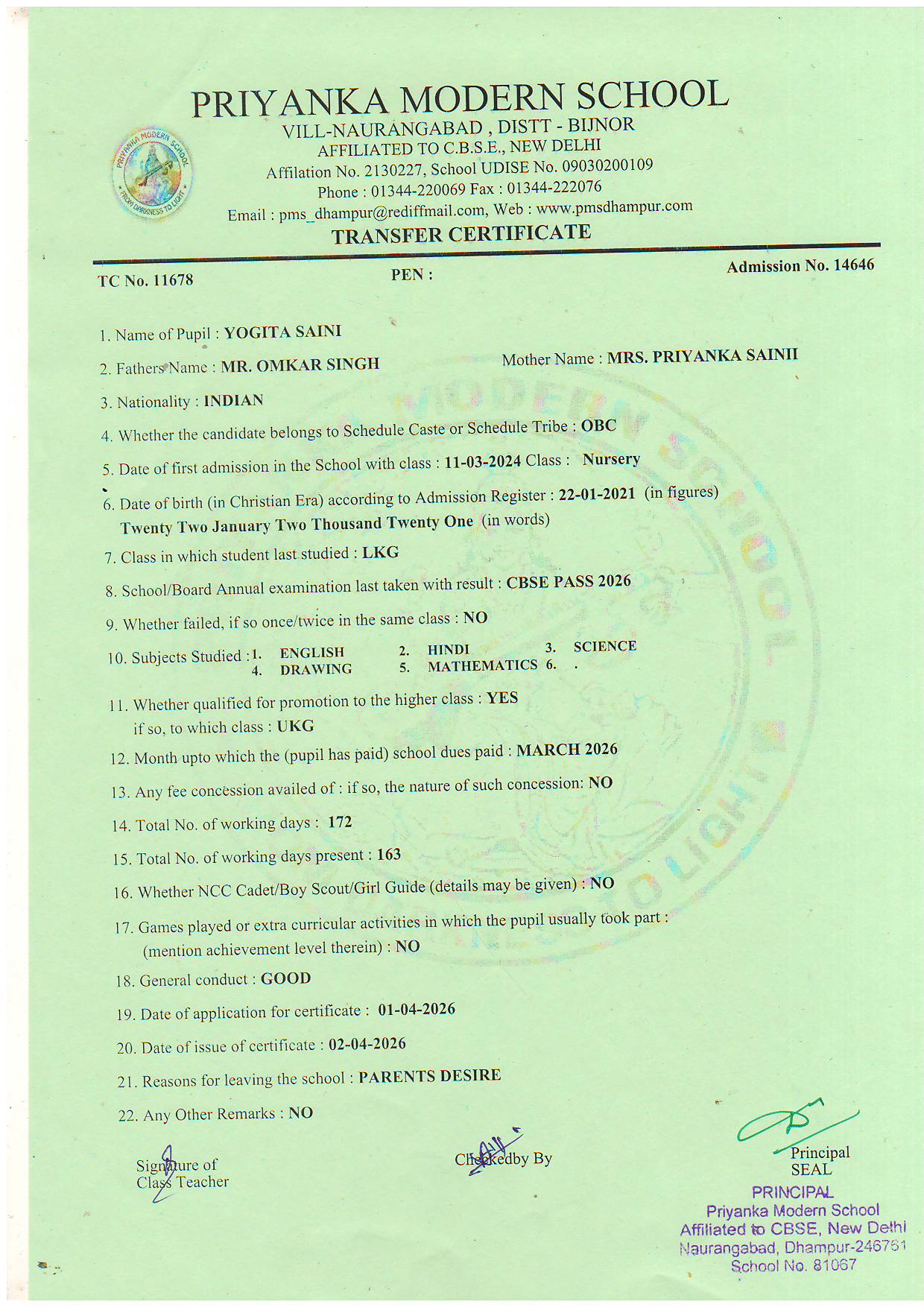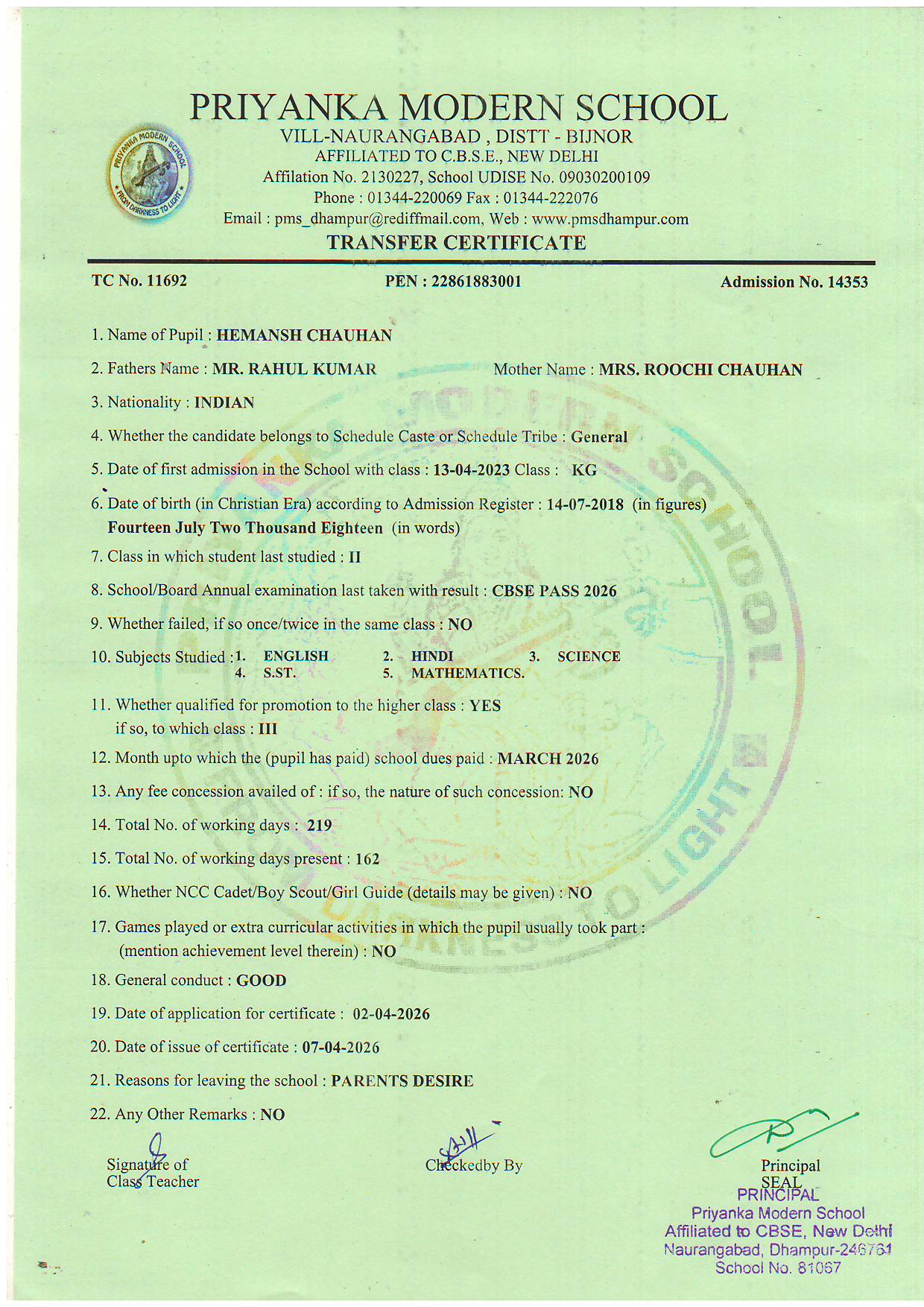 TCs issued by PMS Dhampur