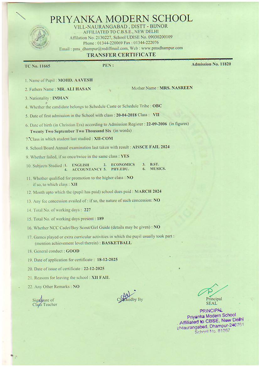 | 47 | 11665 | MOHD. AAVESH | View |